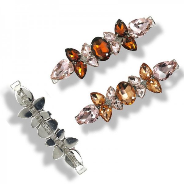 Morsetti realizzati con pietre in vetro con castone rinforzato, saldate e disposte in fila . H: 3 cm x 11,5 cm