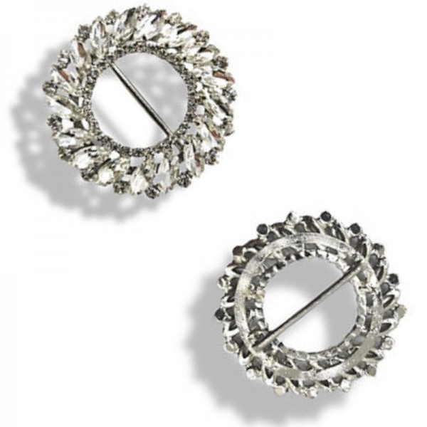 Fibbia circolare, realizzata con pietre crystal in vetro a forma di chicco, strass e pietre crystal singole all'estremità. H: 6,5 cm x 6,5 cm , interno 3 cm