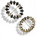 Fibbia circolare, realizzata con pietre in vetro di color crystal, con castone rinforzato. H: 6,5 cm x 6,5 cm , interno 5 cm