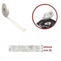 Fettuccia termoadesiva altezza mm 18, ideale per l' esecuzione di orli, non altera la morbidezza dei tessuti, resiste ai lavaggi ad acqua e a secco. Prezzo riferito a confezione da 100 metri