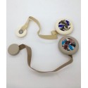 Calamita embrasse tenda in legno Ø cm 6, con fettuccia in cotone, magneti molto resistenti fissati con vite, motivo della calamita con stras che la rende elegante, prezzo riferito alla confezione da 2 pezzi.