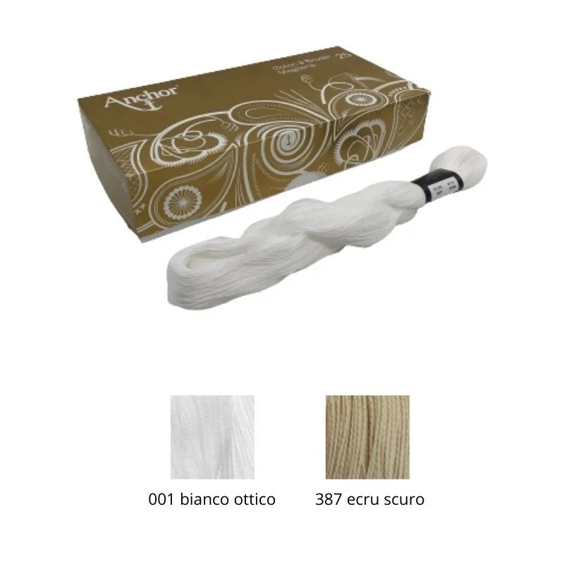 Broder thread, with excellent wash fastness (solid colors) and light fastness. Used for delicate stitches (hem, festoon, flat) and embroidery such as monograms and initials. Ultra-fine, 4-ply, shiny yarn in 100% cotton.