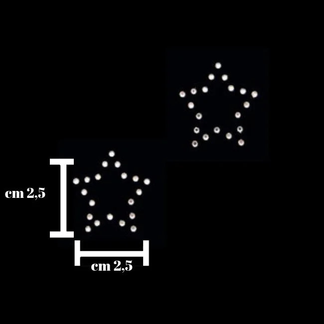 Iron-on rhinestone application (applied with an iron) suitable for embellishing clothing, shoes and accessories in general. Size 2.5 x 2.5 cm. Pack of 2 pieces. Price refers to a pack.