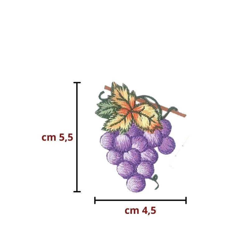 Iron-on grape patch to decorate or cover holes in tablecloths, tea towels, home textiles in general or any fabric item. Size: 4.5 x 5.5 cm. Price refers to a pack of 3 pieces.