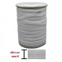 Elastico (treccia si intende il tipo di lavorazione: crochet) ottimo con i lavaggi in lavatrice altezza mm 6, molto morbido in estensione. Prezzo riferito a pezza da 20 metri
