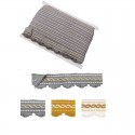 Frangia tripolino multicolr cm 5 composizione 100% acetato. Larghezza 5 cm, mix colori bianco, nero e lurex (oro).Prezzo riferito a pezza da 10 metri.
