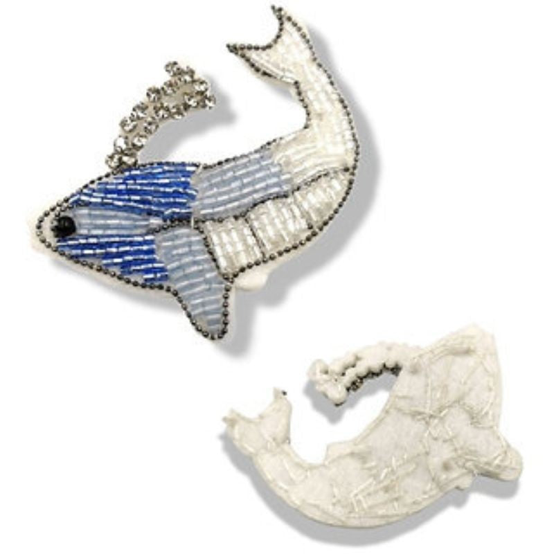 Applicazione raffigurante un Balenottero, realizzata con file di canottiglie e catenella di microsfere che ne delinea i particolari e i bordi. Lo spruzzo di acqua è formato da pietre crystal.H: 65 mm x 65 mm