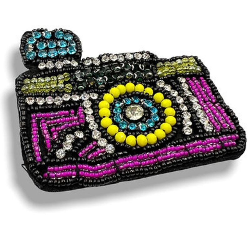 Applicazione forma di macchina fotografica con pietre e corallini cucito a mano,mis 7cmx8cm