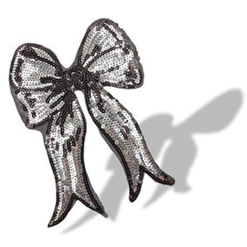Applicazione termoadesiva raffigurante un Fiocco, patchgrande ricamata interamente con paillettes lucide.H: 24 cm x 17 cm
