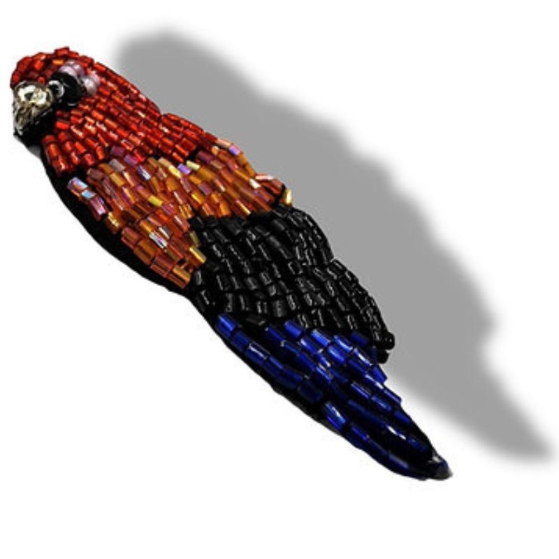 Applicazione termoadesiva interamente composta da Corallini cuciti a mano a forma di Pappagallo e Pietra in Vetro sul becco.H: 3 cm x 7,8 cm