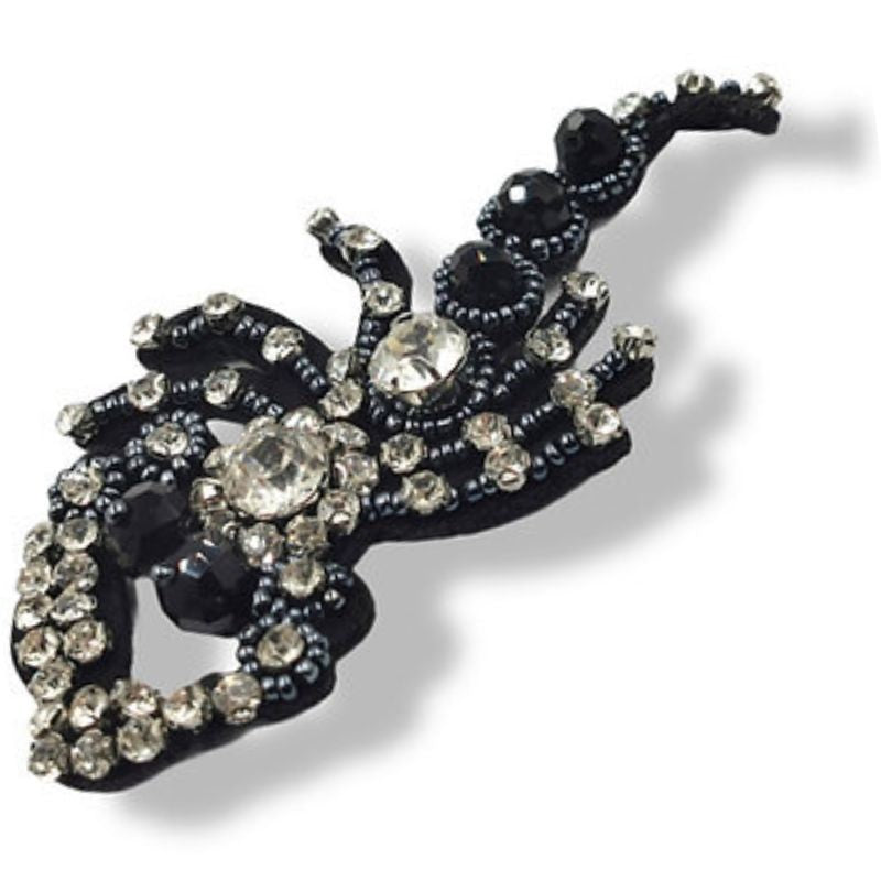 Applicazione interamente composta da Pietre in Vetro e Corallini cuciti a mano a forma di Scorpione. H: 5,5 cm x 10 cm.