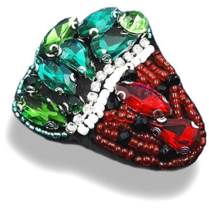 Applicazione raffigurante una Fragola, realizzata con pietre, file di strass e corallini.H: 4,5 cm x 5 cm