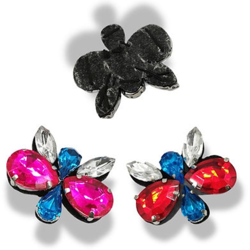 Applicazione raffigurante una Farfalla, realizzata con pietre singole castonate ricamate a mano su tessuto.H: 2,5 cm x 3,5 cm