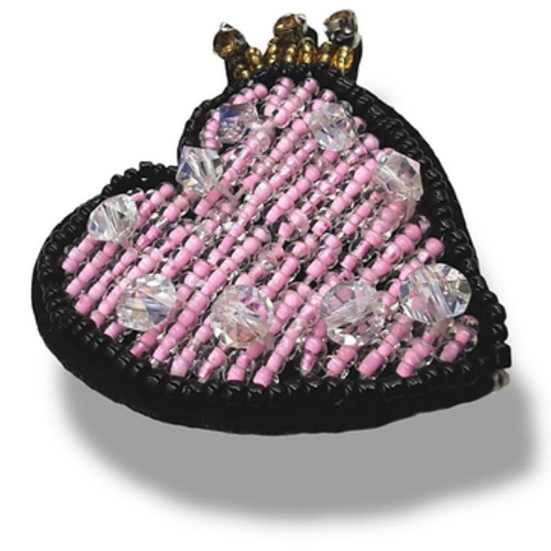 Applicazione a forma di Cuore interamente composto da Corallini e Pietre in Vetro cucite a mano. H: 6cm x 5cm.