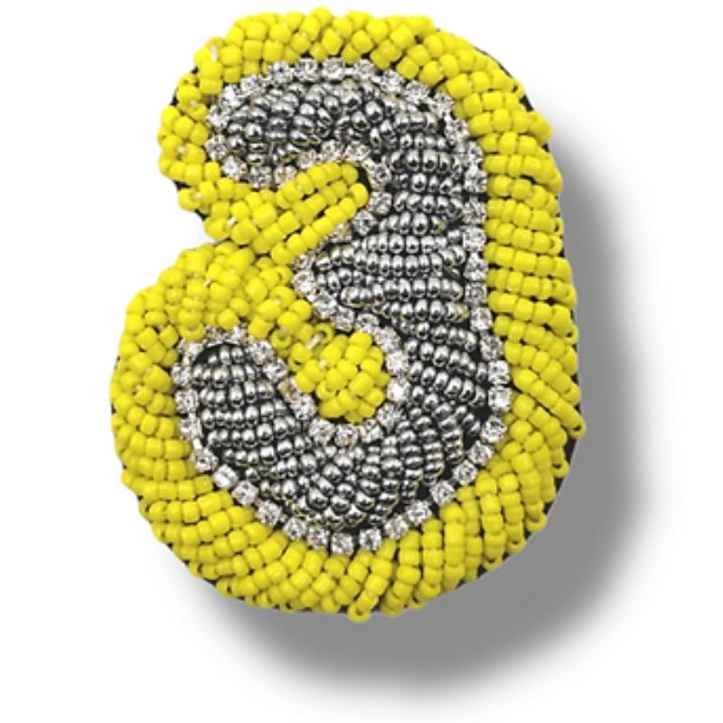 Applicazione interamente composta da Corallini e Pietre in Vetro cucite a mano a forma di Numero 3. H: 7 cm x 5 cm.