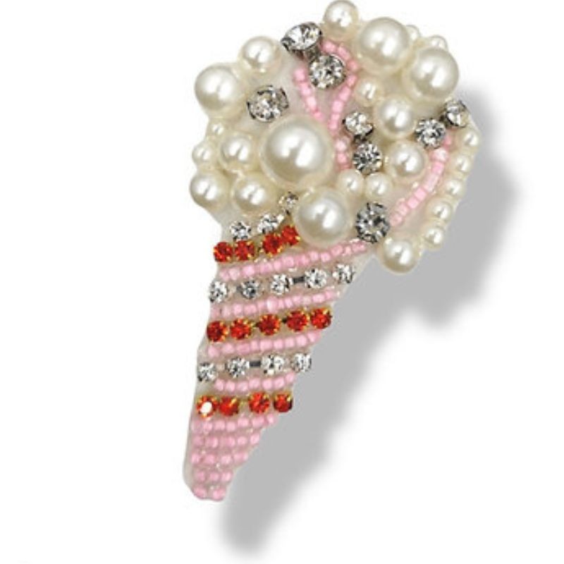Applicazione raffigurante un Cono Gelato, realizzata con file di strass, corallini, pietre e perline.H: 3,5 cm x 7 cm