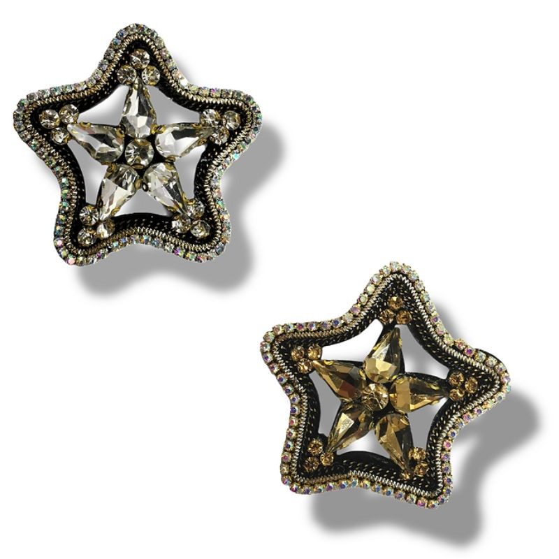 Applicazione interamente composta da Pietre in Vetro cucite a mano a forma di Stella. H: 5 cm x 5,5 cm.