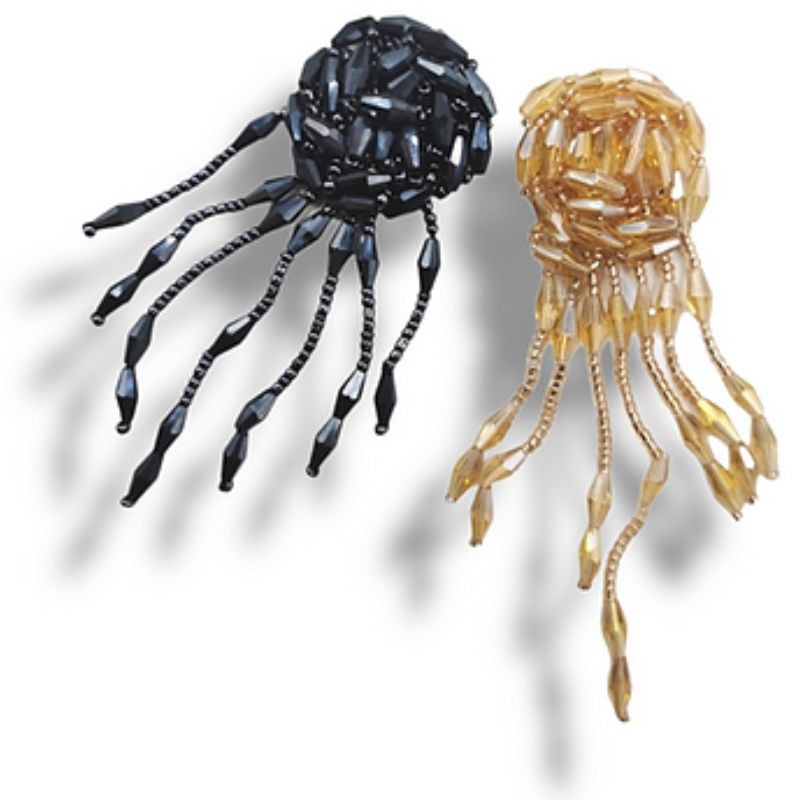 Applicazione interamente composta da Corallini cuciti a mano. H: 10 cm x 3,5 cm.