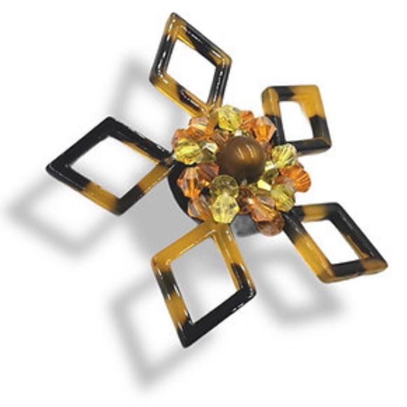 Applicazione a forma di Fiore in Plastica, interamente composta da Corallini cuciti a mano e Pietra centrale in Vetro. H: 5,3 cm x 5,7 cm