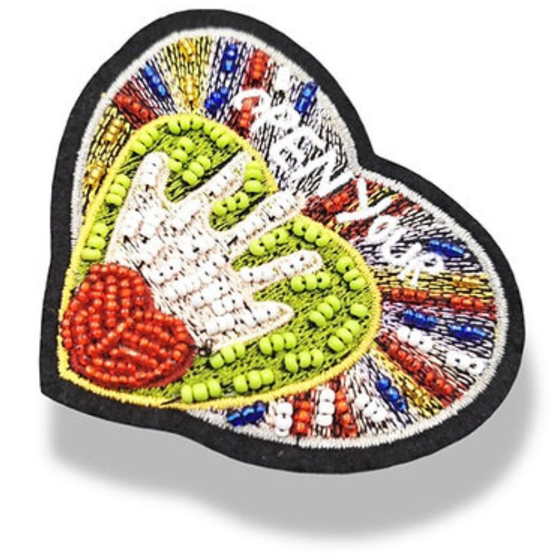 Applicazione ricamata e termoadesiva, raffigurante un Cuore, il ricamo interno è realizzato con corallini cuciti a mano.H: 9,5 cm x 7,5 cm