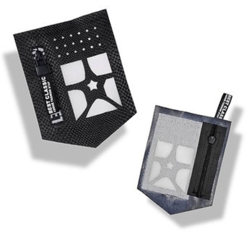 Applicazione termoadesiva a forma di taschino, è realizzata in eco-pelle nera martellata e con inserti in rete, una cerniera e un tira cerniera stampato.H: 12 cm x 9 cm , cerniera da 7 cm