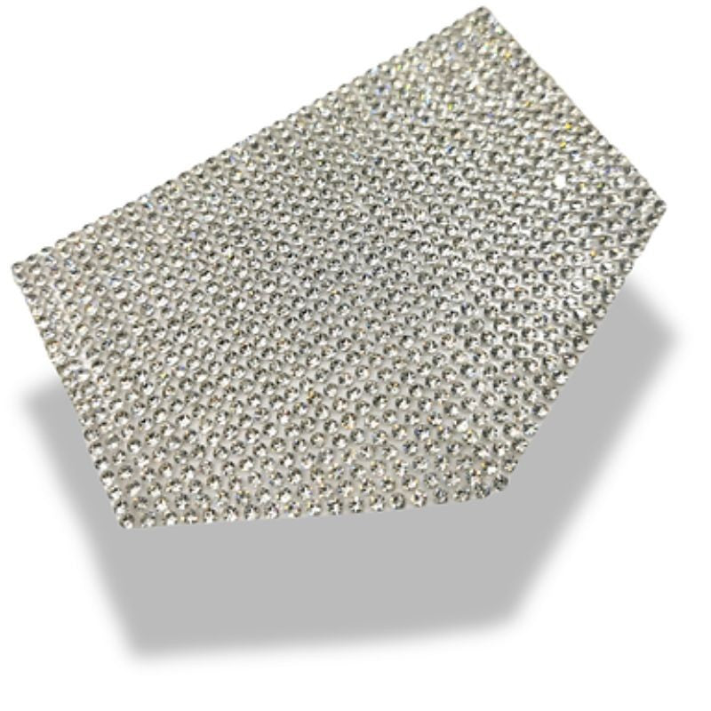 Applicazione a forma di taschino, realizzata interamente da strass del diametro di 2 mm.H: 9 cm x 7 cm
