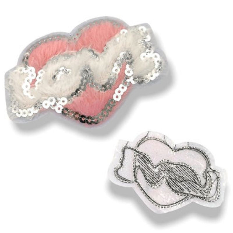 Applicazione termoadesiva raffigurante un Cuore in pelliccetta rosa, con una scritta " Love " in pelliccetta bianca e una fila di paillettes crystal che delinea i bordi del Cuore e della scritta .H: 7 cm x 10 cm