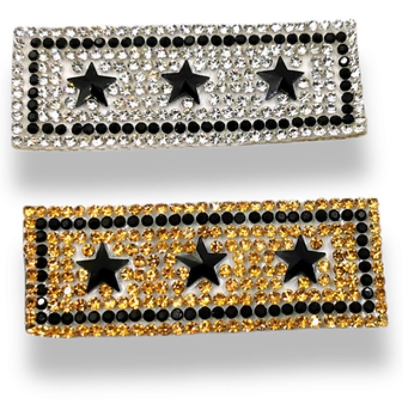 Applicazione termoadesiva composta da strass e n 3 Stelline in posizione centrale.H: 5,5 cm x 2,1 cm