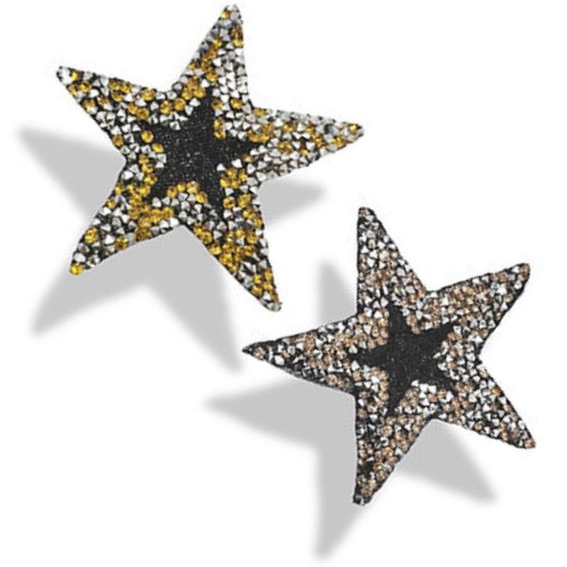 Applicazione termoadesiva, raffigurante una stella, la parte centrale è realizzata con polvere di microsfere, mentre esternamente è composta da corallini conici. H: 8 cm x 8 cm