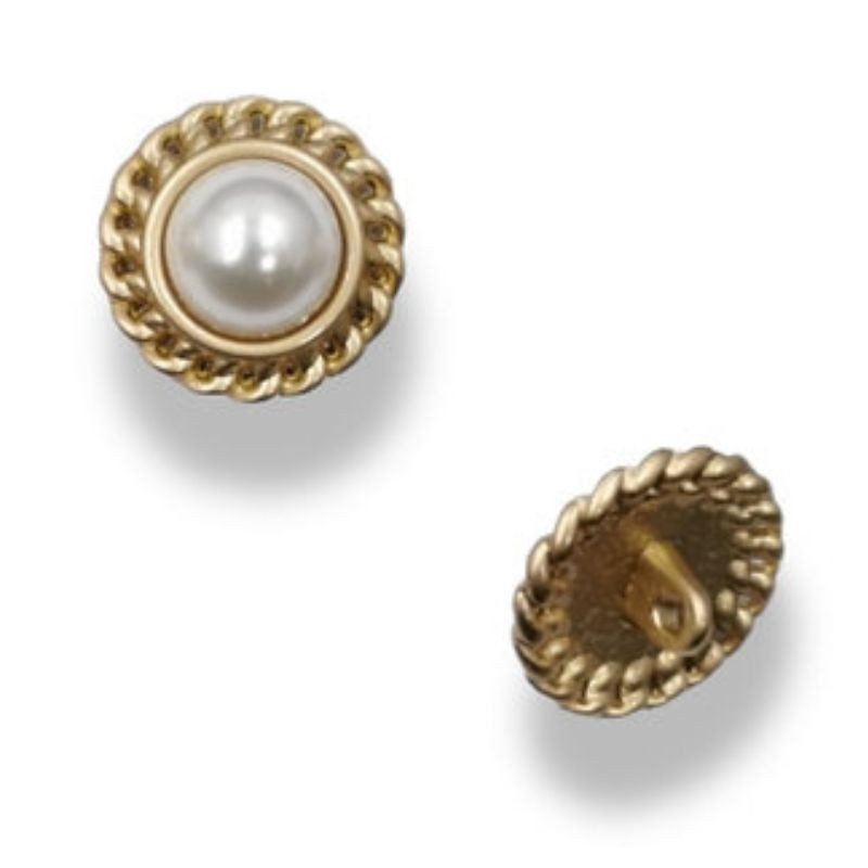 Bottone di forma circolare, realizzato su base bronzo con perla centrale incastonata.Circonferenza 18 mm 28 L