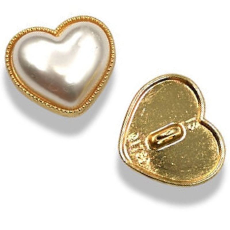 Bottone raffigurante la forma di un Cuore, realizzato su base dorata con perla centrale incastonata.H: 16 mm x 18 mm 28L