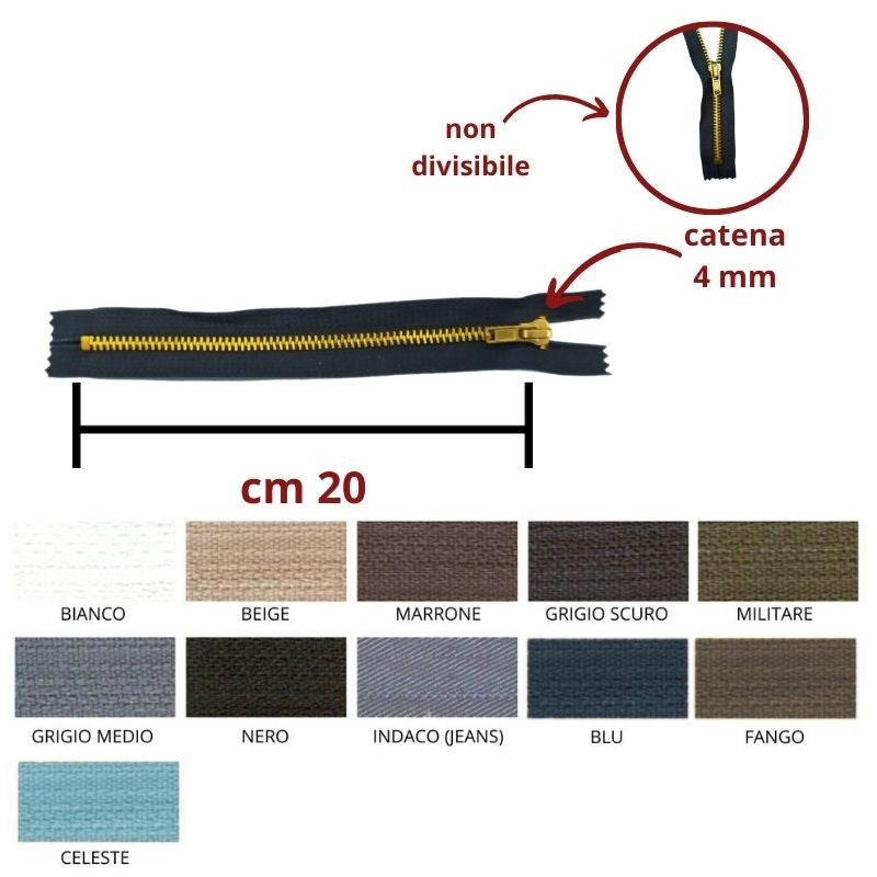 Cerniera lampo per jeans 20 cm ottone catena 4 mm articolo 1183/1/20