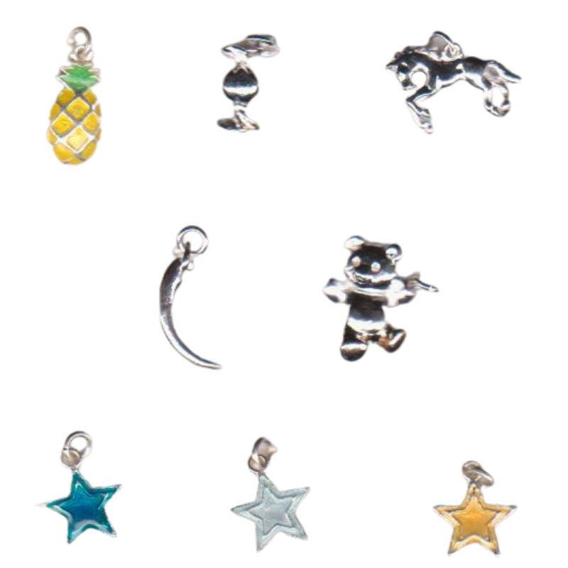 Ciondolini per braccialetti e collaneMateriale: OttoneMisura mm 10 x 10 circaConfezione da 12 pezziPrezzo riferito a confezione