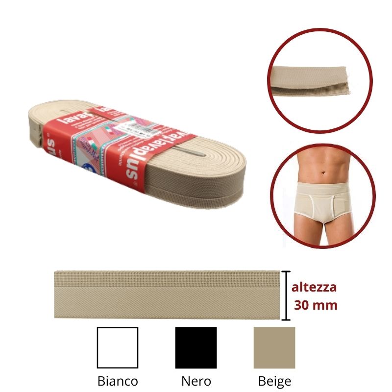 Elastico lavaplus doppio labbro per slip o box da uomo, accavallabile, altezza cm 3 Prezzo riferito a confezione da 10 metri
