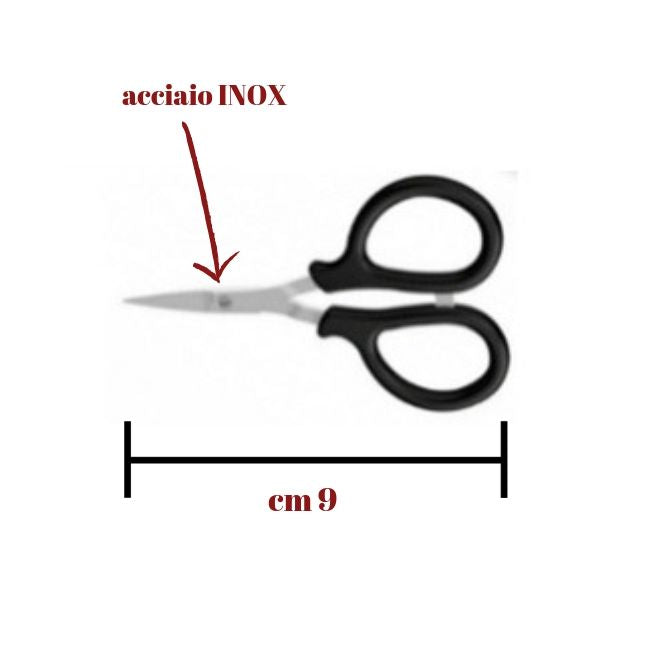 Forbici professionali cm 9 lunghezza, per uso tessile, ricamo e multiuso di altissima qualità, realizzate inacciaio aisi 420 con lame temprate per una lunga durata del tagliente. Adatta per tessuti diqualsiasi genere e multiuso. Le forbici sono realizzate con macchine speciali che rendono unafinitura e funzionamento perfetto che dura nel tempo. I manici in nylon 6 sono fabbricati confibra di vetro con un design innovativo e extra confortevole. Il prezzo è riferito a 1 forbicina