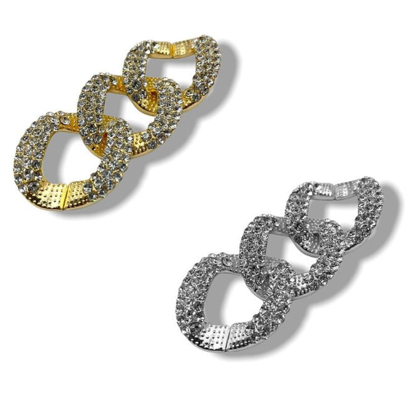 Morsetto base in metallo a tre maglie, con strassini applicati a mano.H: 8 cm x 3 cm