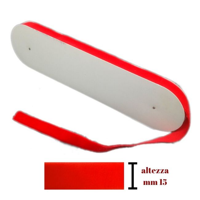 Nastro in morbido velluto, lato posteriore del nastro composto in 100% poliestere. Dimensione mm 15.Prezzo riferito a confezione da 10 metri