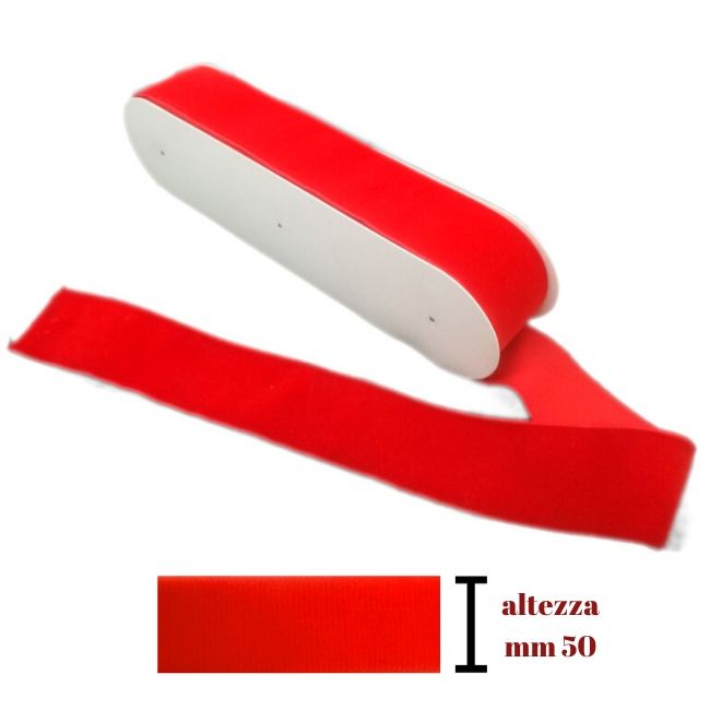 Nastro in morbido velluto, lato posteriore del nastro composto in 100% poliestere. Dimensione mm 50.Prezzo riferito a confezione da 10 metri