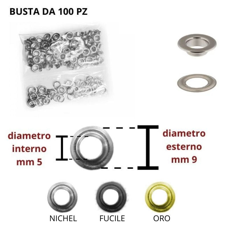 Occhielli in ottone ø mm 5 articolo 1351 pezzi 100