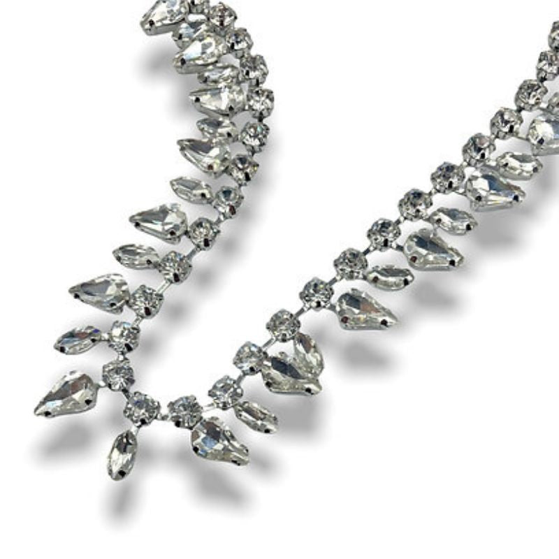 Catena gioiello saldata realizzata con pendenti composti da pietre a forma di chicco e di goccia. H: 2 cm x 8 cm.