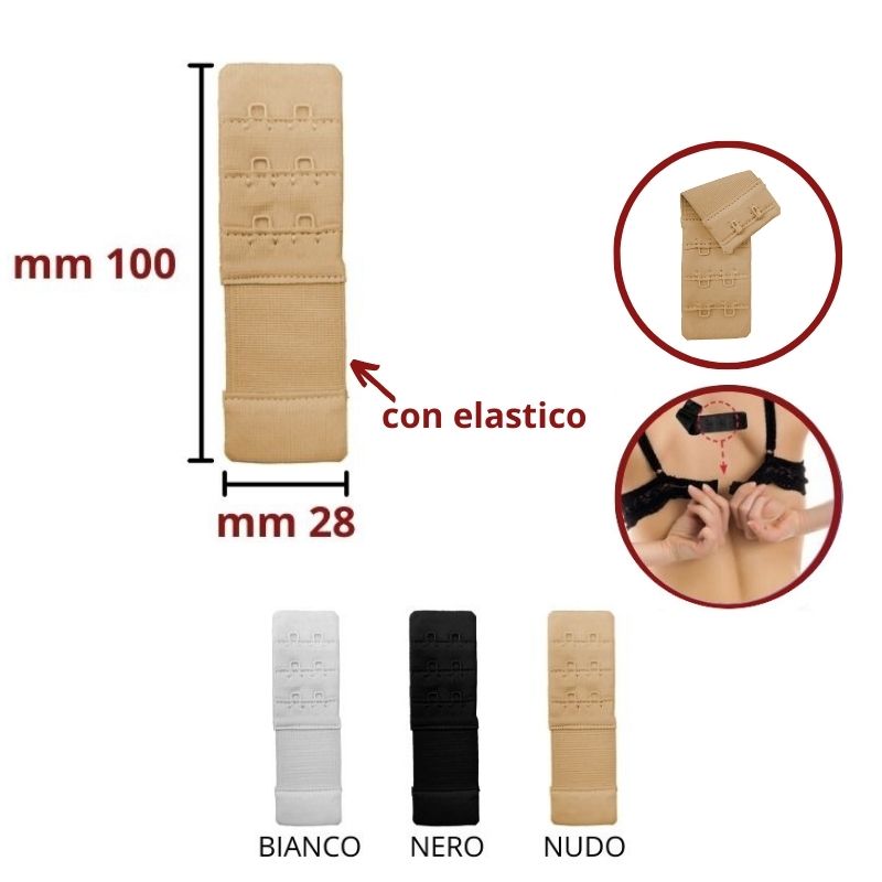 Prolunga reggiseno con elastico a 2 ganci h mm 28 articolo PR28 MAS