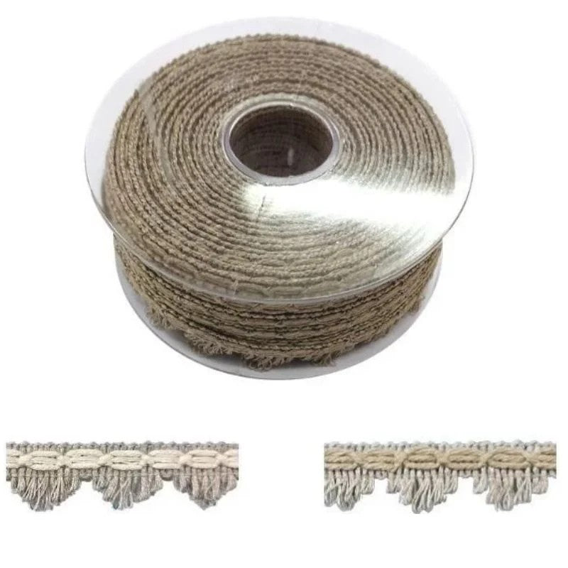 Frangiolina in 100% lino, indicata per arredo tessile casa, abbigliamento e accessori, altezza mm 15. Prezzo riferito a confezione da 20 metri