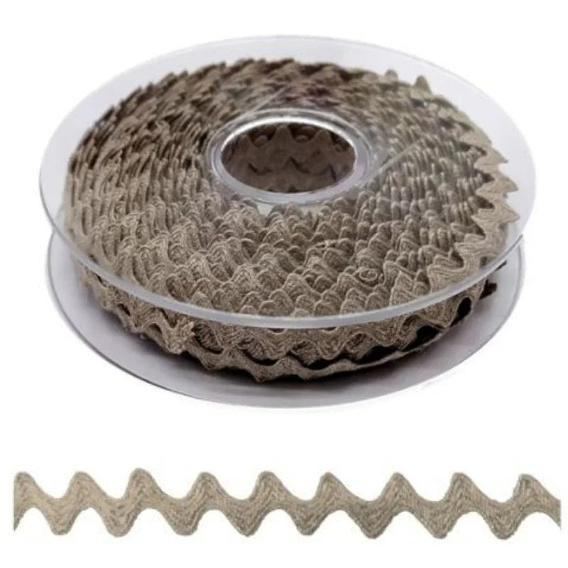 Passamaneria zig zag copri punto, per capi di abbigliamento o arredo tessile per la casa. 100% lino. Altezza mm 10, prezzo riferito a confezione da 20 metri