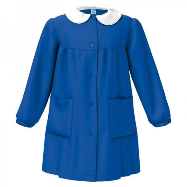Grembiule Siggi fondo blu per scuola, modello per bambina senza ricamo sulla parte anteriore, abbottonatura con bottone Taglie 65,70,75,80,85,90,95,100,110 nell' apposito riquadro verificare l altezza o l' eta' del bambino Prezzo riferito a 1 pezzo.